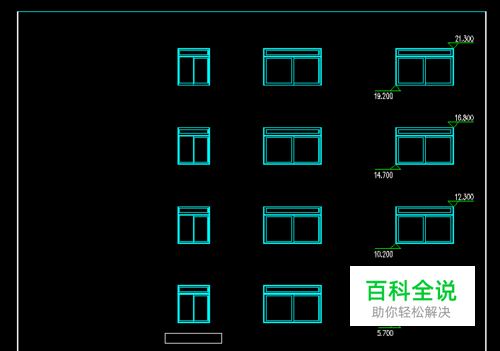 在CAD中打开这一立面图,选择图纸中间最底部的一个窗户,可以看见此时选择的是一条线段,如下图所示。