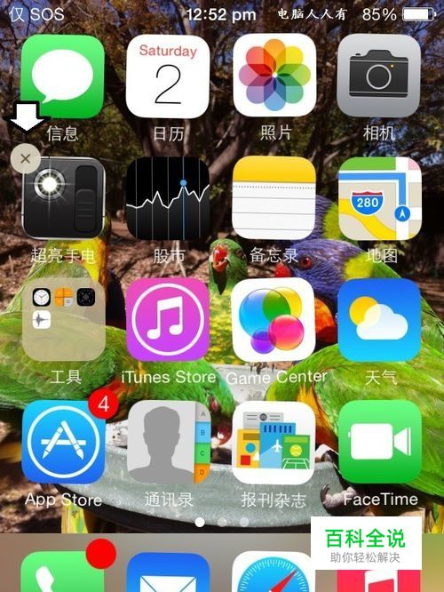 然后,使用手指往左滑动,进入第二页面,这里大多数的应用程序是用户自定义安装的,所以可以删除→点击该图标左上方的大叉。