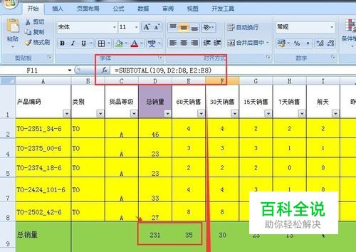 第十步,也给大家演算一下参数 109的2组数据的求和是不是也同109是一样的,同样的是在FX处找到SUBTOTAL这个函数,同样隐藏了第三行与第六行的数据,选的是D2-D8,E2-E8这2组数据得出来的是173,也就是D10+E10=152+21=173,哈哈终于都验算成功了,大家也去试试吧!