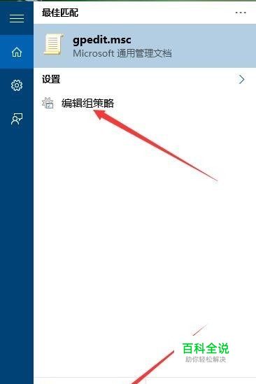在Windows10的搜索框中输入gpedit.msc命令,然后在搜索结果中选择“编辑组策略”菜单项,打开本地组策略编辑器