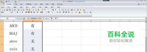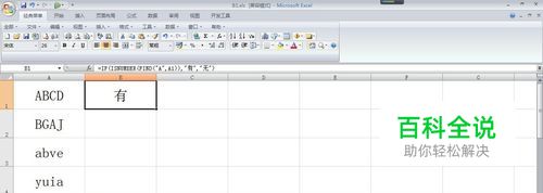 判断字符串中是否包含大写字母A,可用公式=IF(ISNUMBER(FIND("A",A1)),"有","无")。