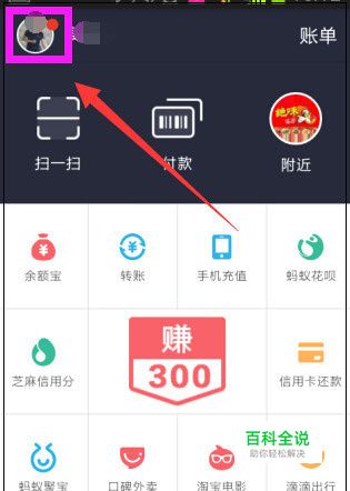 打开进入手机支付宝界面,点击左上角的“头像”。