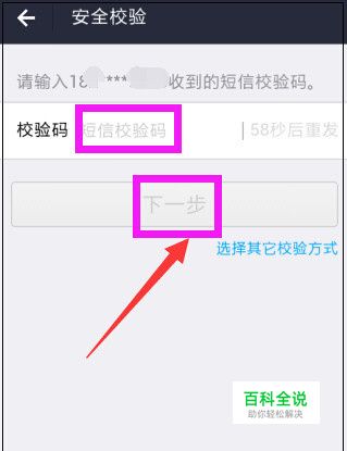 然后看下自己的手机,填写手机收到的短信校验码后,点击“下一步”。