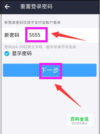 进入重置登录密码界面,输入新的登录密码,点击“下一步”,这样支付宝登录密码即可成功修改。