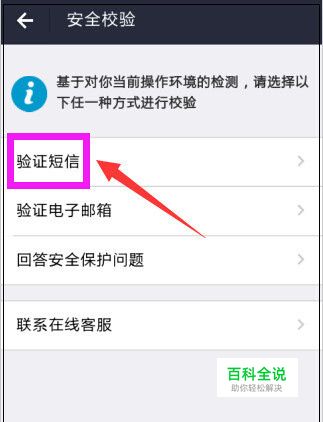 进入安全校验界面,有几种安全验证方式,小编点击“验证短信”进行验证。