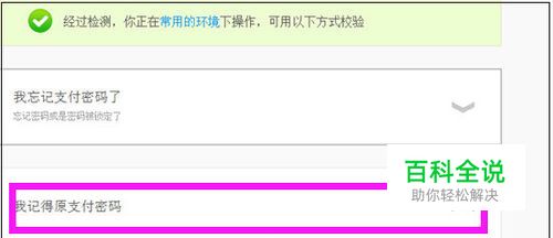 进入重置支付密码界面,点击“我记得原来支付密码”,如果不记得,也可以点击我忘记支付密码后再进行操作。