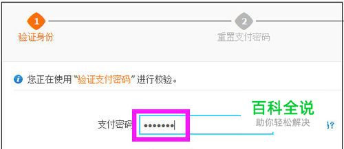 进入重置支付密码验证身份页面,输入原来支付密码,点击“下一步”。