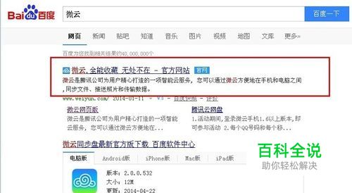 在电脑上面直接搜索“微云”,然后点击第一个链接进入。