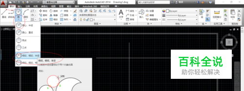 如图所示,点击"圆"图标向下箭头。弹出下拉列表选项,选择"相切,相切,半径"项。
