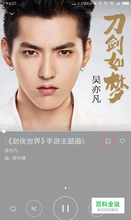 第一种:小米音乐 1.打开播放器,在歌曲名称右侧有个推送按钮,点击图中红框地方