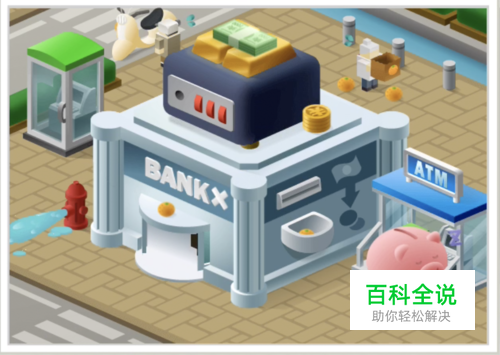 将粉色的硬币给小猪。然后小猪就离开了,获取绿色的电话。同时打开电话停,获取取款机。将电话和取款机按照原图放回去。