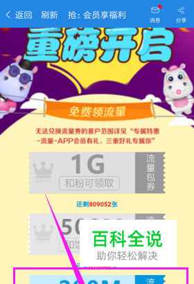 点击你能领取的那个流量,比如我这里只能领取200M。这个能领取多少和我们每个季度的消费有关,消费达到150才能领取1G的。