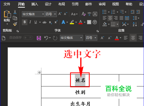 打开Word文档,在表格中我们先选中字数较少的文字。如图所示: