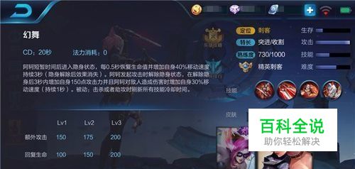 大招——幻舞 解析:阿轲在重做后基本上所有技能都进行了修改,但大招却让阿轲保留了重做前击杀或者助攻时刷新所有技能冷却时间的特点,这就让阿轲拥有超强的团战收割能力。释放大招后的隐身效果使阿轲可以悄无声息的接近敌人,并且隐身状态下每0.5秒恢复生命值并增加自身移速,无论是追杀还是逃生都非常实用。大招释放时会往前位移一小段距离,可以利用这个特点穿过一些薄墙体,而在解除隐身状态后,阿轲会在3秒内增加自身攻击力,让她拥有短时间的爆发输出,更快速击杀敌人。需要注意的是,阿轲大招的隐身效果每隔1秒会出现光效,这就让敌人有克制阿轲的可能,预判能力较强的玩家甚至可以用范围性技能命中阿轲。不过,我们可以利用草丛来规避这个缺陷,大幅度避免被敌人追击的风险。