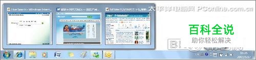 在Windows 7中的任务栏,图标显示变大,变得更加清晰直接。当然用户还可以根据自己的习惯或者需要选择设置任务栏的外观,甚至是把任务栏放到屏幕的左边、右侧,或者顶部等。