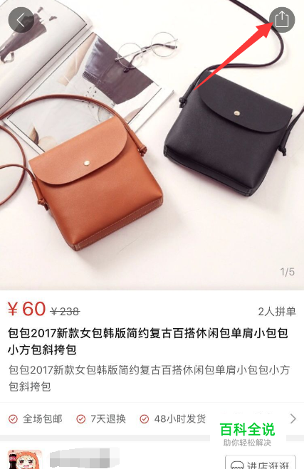 打开拼多多宝贝页面,点击分享。