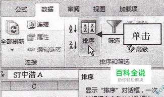 步骤2:切换至“数据”面板,在“排序和筛选”选项板中单击“排序”按钮,如下图所示。