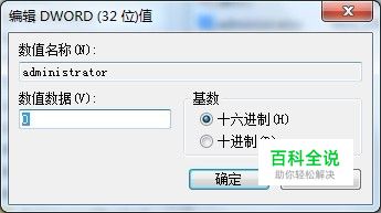 在“UserLis”项的右边窗口中鼠标右键“新建-DWORD(32-位值)”,把数值名称命名为“administrator”,数值数据设为“0”。