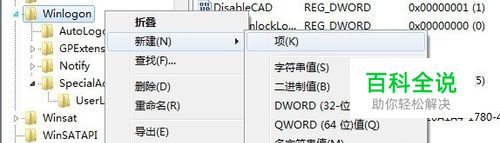 在Winlogon项上鼠标右键“新建-项”,将其命名为“SpecialAccounts”。同样在“SpecialAccounts”项上新建名为“UserLis”的注册表项