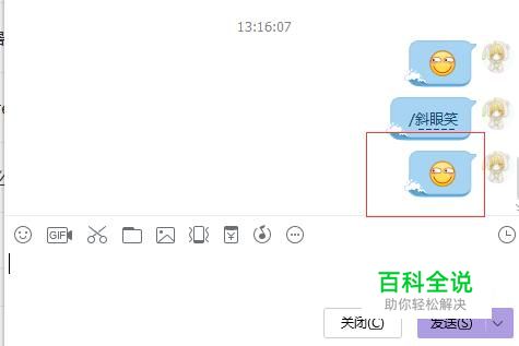 然后点击发送就可以把斜眼笑表情显示在聊天对话框中了。