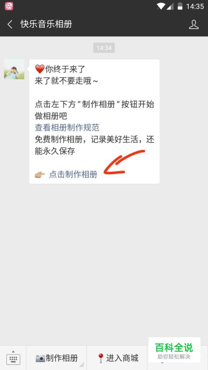 在该公众号里会弹出一段话,如图所示,点击“点击制作相册”