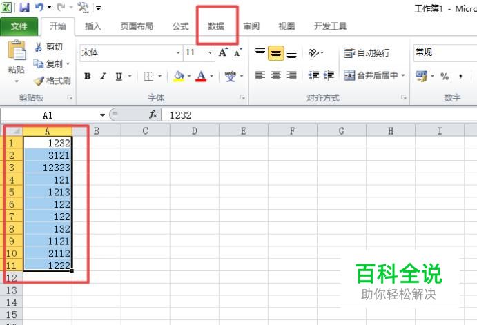 之后我们选中这些数字,然后点击工具栏中的数据;