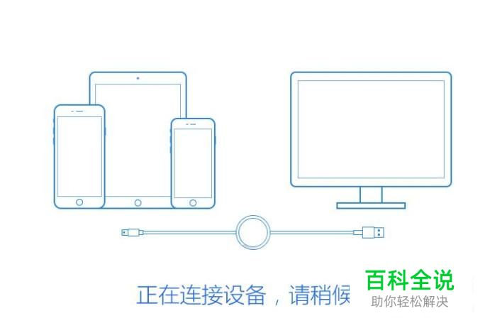 然后根据软件提示将我们的手机和电脑用数据线连接起来,如下图所示。