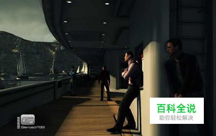 游戏一开始动画中邦德在飞机上跳下来到敌人的游艇,按右键瞄准,左键射击干掉第一个敌人。