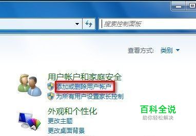 2,在“类别”视图下选择“添加或删除用户账户”。