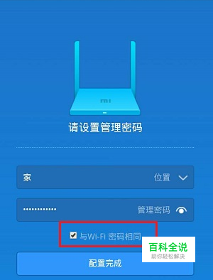 也可以勾选下面的“与Wi-Fi密码相同”的选项,即把WiFi密码作为管理密码。——>点击“配置完成”。