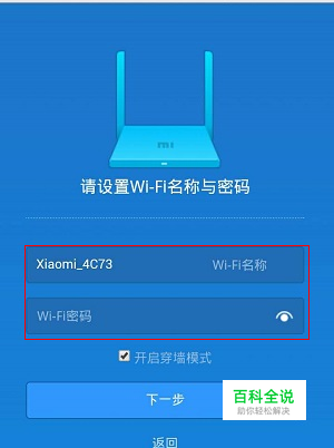 设置“Wi-Fi名称”、“Wi-Fi密码”——>点击“下一步”。
