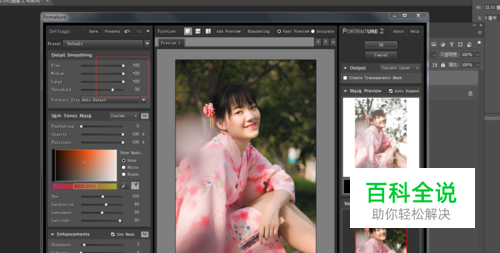用这个磨皮软件把最上面四个拉倒最高,用吸管吸皮肤时选择皮肤里不太均匀的地方,一般选择皮肤里稍微暗沉的皮肤。