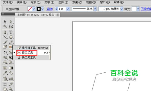 然后用剪刀工具在封闭路径点击一下,距离一段再点击一下,就可以拆分出一条线段如图。