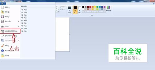 点击桌面的系统菜单,在菜单中选择“画图”软件,并点击进入,在弹出的画图软件界面中,点击界面左上角的菜单,在弹出的菜单中选择“从扫描仪或照相机”。