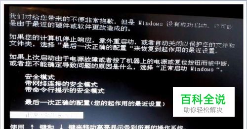 2按F8进入笔记本的高级模式,我们便能进入到高级模式后,我们选择最近一次正确的配置(可能不叫这个名字,不过也没多大差别),然后点击确定,如果问题不大的话应该能够解决问题。