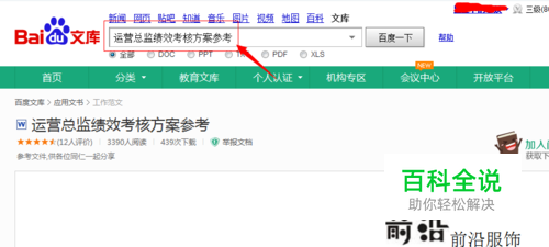 首先打开浏览器,进入百度文库,输入搜索关键词,找到自己中意的资料,点击打开文档。