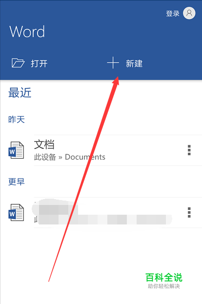 打开手机版Word,并选择新建文档;