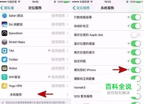 且需要在「设置—隐私—定位服务—系统服务—查找我的iPhone」中打开服务。