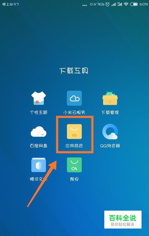第一步,找到手机的APP应用商店(这里使用的是小米手机,APP应用商店为小米应用商店),并打开。