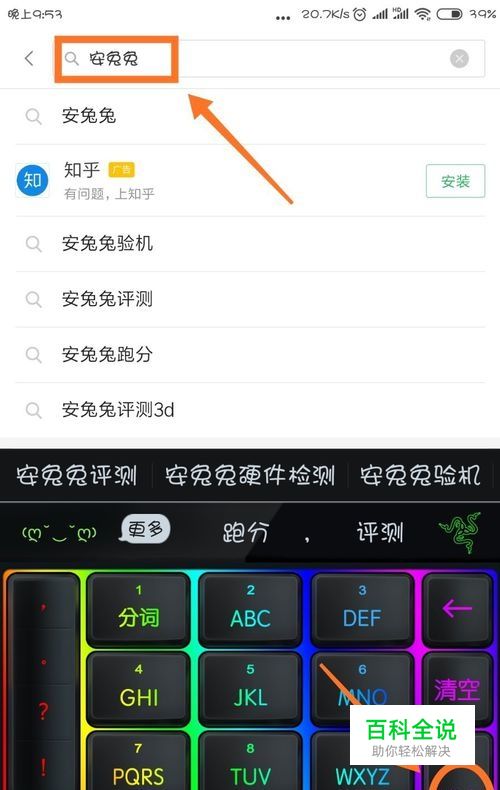 第二步,在应用商店最上方的搜索框内搜索“安兔兔”。