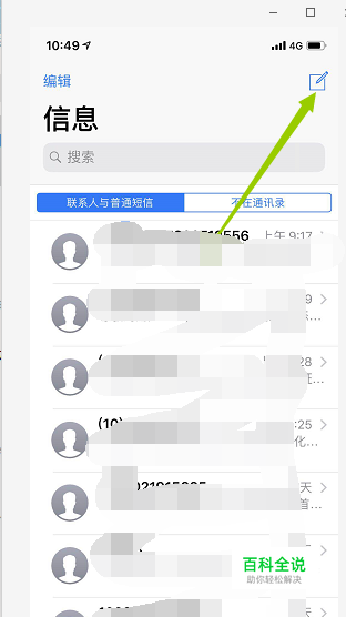 首先,进入到手机的信息页面,点击右上角的写信息图标,如下图所示。