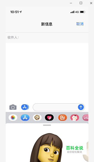 接着,显示短信编辑界面,在底部的输入框下方,有一个猴子头像的图标,就是拟我表情的符号,点击它。