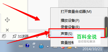 接着右击声音标志选择里面的声音选项