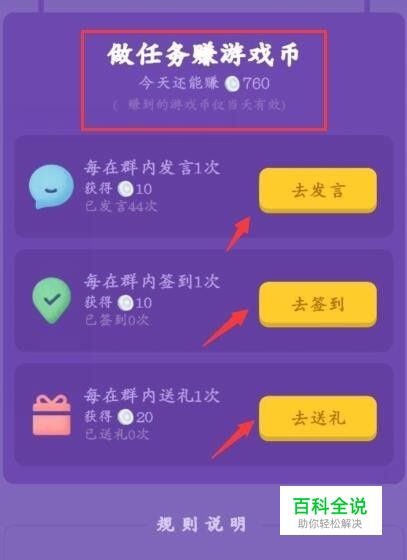 当群内每次有人送礼,下方会出现箭头所指“做任务,得金豆”入口,点击进入。