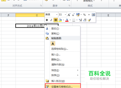 第二步选择所在单元格右击选择-》设置单元格格式。如图