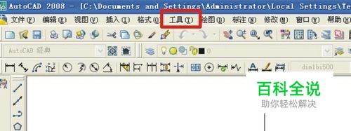打开CAD,在上方菜单栏中找到并点击“工具”