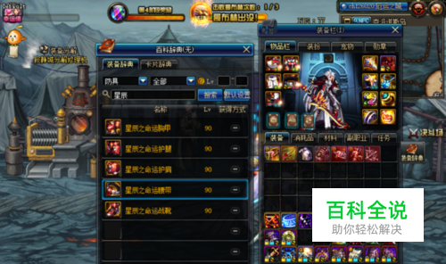 首先呢,A套的话就是地下城内我们可以打深渊获得的,所有的,等级是90的ss套装,注意啦,一定要是套装才可以,不是不行