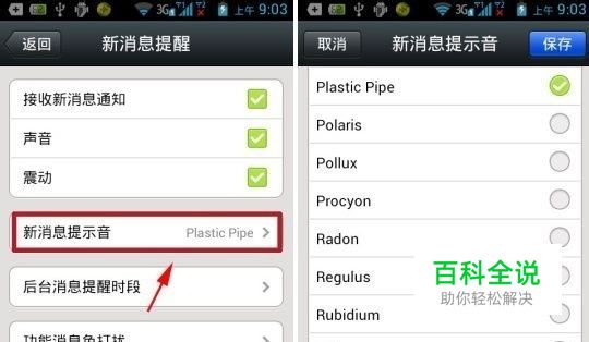 2、再点击“新消息提示音”,然后系统就会出现在很多息息提示音,试到到你喜欢的其中一种提示音,然后点击保存。