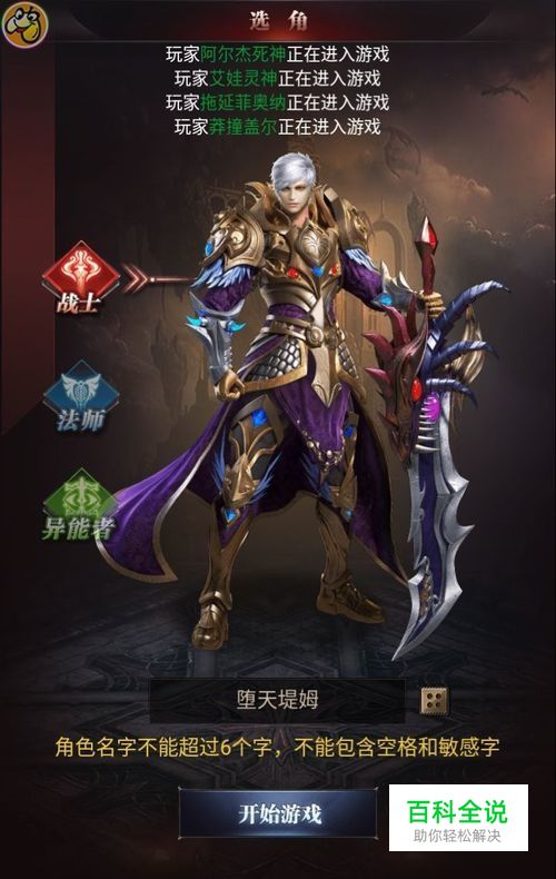 首先打开魔域来了游戏,开始创建角色,有三种职业可供选择,战士、法师、异能者,选择好自己喜欢的职业,那么进入游戏,如图所示