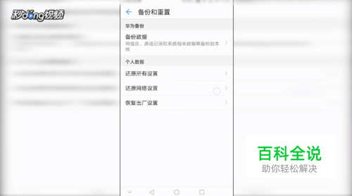 下滑找到备份和重置,进入后点击还原网络设置,确认还原设置。